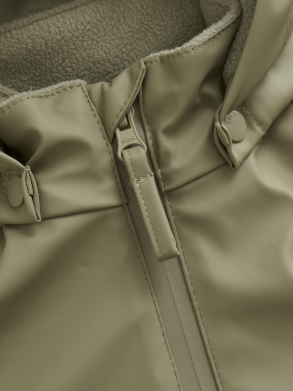 OverzichtEffen regenpak van gerecycled polyester met PU-coating en fleecevoering in duurzaam materiaal van CeLaVi.