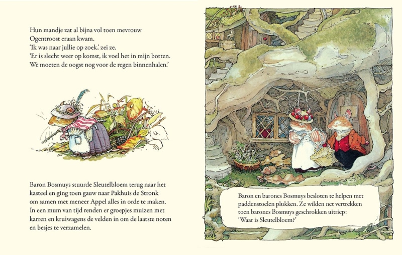 Een herfststorm is op komst en de muizen van de Bramenbuurt doen hun uiterste best om hun voorraden op tijd aan te vullen. Overal worden noten, bessen en zaden verzameld - behalve door Sleutelbloem, de dromerige dochter van baron Bosmuys. Zij dwaalt het woud in en verdwaalt. Helemaal alleen in het donker begint Sleutelbloem zich toch wel zorgen te maken. Zal ze nog op tijd worden gevonden? Herfstverhaal is een hartverwarmend verhaal over vindingrijkheid, verbondenheid en thuiskomen, rijk geïllustreerd met de sfeervolle, minutieus gedetailleerde prenten van Jill Barklem. Deze klassieker uit de Bramenbuurt-serie verschijnt nu opnieuw in een prachtige, verzorgde uitgave. De Bramenbuurt-serie is wereldwijd geliefd om haar tijdloze verhalen, seizoensgebonden thema's en ongelooflijk gedetailleerde illustraties.