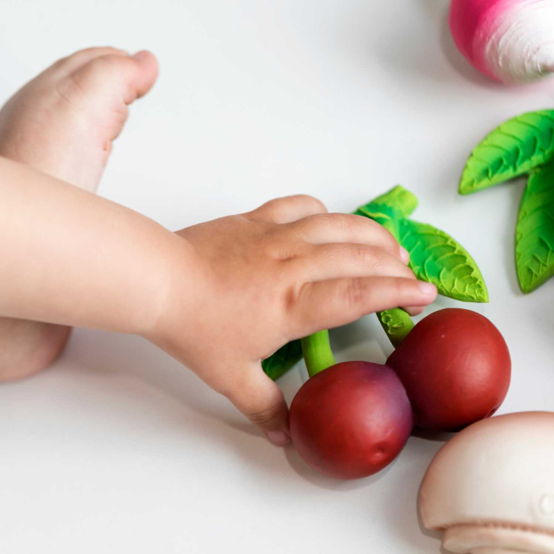 OverzichtMerry de kers is een babybijtspeeltje dat de zintuigen van baby's stimuleert en tegelijkertijd het tandvlees van kleine kinderen verzacht. De realistische texturen ontwikkelen de tastzin van kinderen.