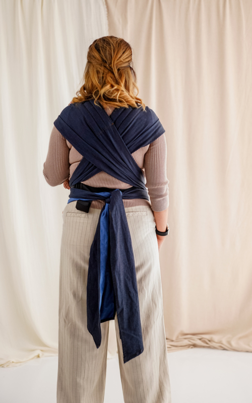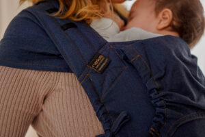 - Zorgt ervoor dat de knieën van uw baby (knie tot knie, M-vorm) en het hoofdje altijd worden ondersteund.