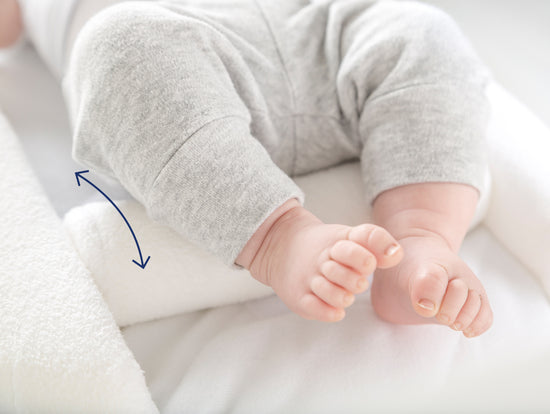 Dankzij de verwijderbare rol aan de billetjes kan je baby’s beentjes in foetushouding leggen om krampjes te verzachten